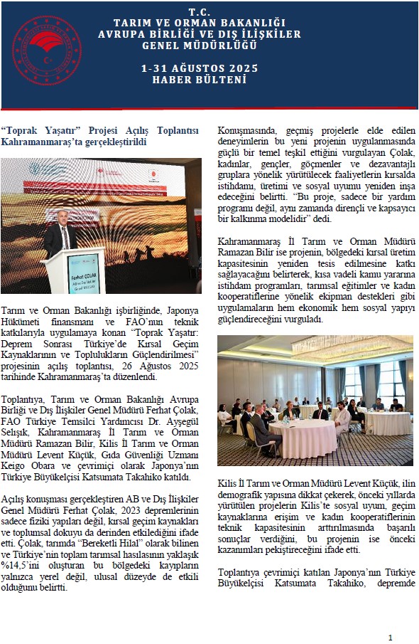 Ağustos 2025 - Haber Bülteni için TIKLAYINIZ
