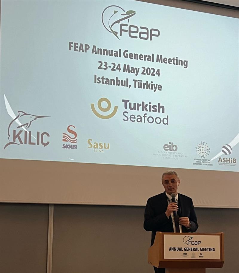 Su ürünleri yetiştiriciliğinin sürdürülebilir ve sorumlu gelişimini hedefleyerek, ortak uygulama çalışmalarına katkı veren Avrupa Su Ürünleri Üreticileri Federasyonu'nun (FEAP) 2024 yılı Genel Kurul Toplantısı 23-24 Mayıs 2024 tarihlerinde İstanbul'da gerçekleştirildi.
