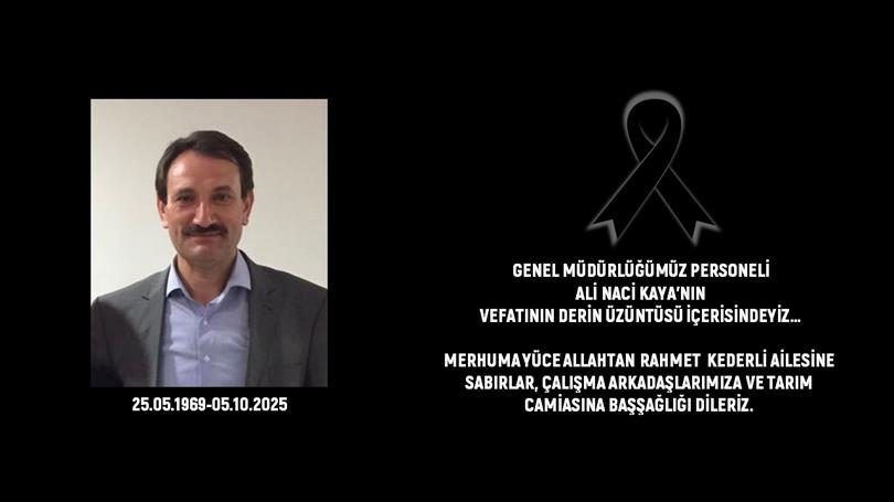 GENEL MÜDÜRLÜĞÜMÜZ PERSONELİ ALİ NACİ KAYA VEFAT ETTİ