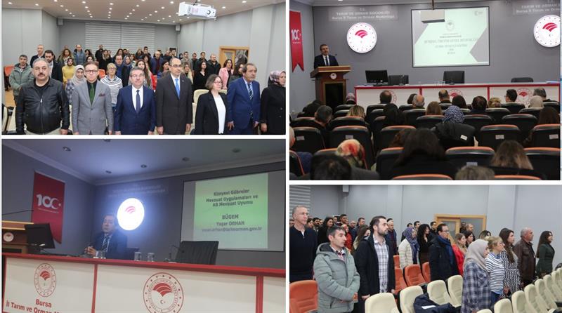Tarımda kullanılan gübrelerin piyasa gözetim ve denetiminin daha etkin yapılabilmesi amacıyla Genel Müdürlüğümüzce düzenlenen Gübre Denetçisi Eğitimi Bursa İl Tarım ve Orman Müdürlüğünde 30 Mart 2026 tarihinde başladı. Egitime Bursa, Balıkesir, Erzurum, Tokat, Yalova, Çanakkale ve Bilecik İl Tarım ve Orman Müdürlüklerinde görev yapan toplam 93 personel katılımı sağlıyor.