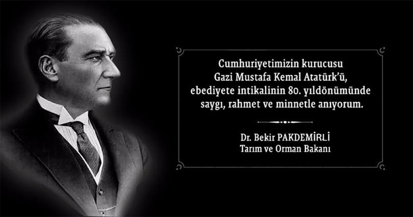 Tarım ve Orman Bakanı Dr. Bekir Pakdemirli, 10 Kasım Atatürk'ü Anma Günü dolayısıyla bir mesaj yayınladı.