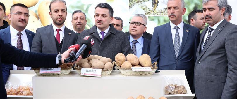 Türkiye'nin, tohumda kendi kendine yeterliliği sağlamak durumunda olduğunu bildiren Bakan Pakdemirli, "Burada patateste çok önemli bir yeniliğe bugün itibarıyla imza atmış bulunuyoruz. Bölgede bazı yasaklı, ekemediğimiz alanlar bulunuyor. Bölgede siğil gibi hastalıklar da var. Bu hastalıklardan tamamen ari, çok yakın zamanda piyasaya çıkacak yerli patates çeşitlerimiz de var. Bunlar Türkiye'nin toplam üretimini artıracak girişimlerdir." ifadelerini kullandı.