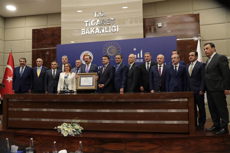 Tarım ve Orman Bakanı Dr. Bekir Pakdemirli, Ticaret Bakanı Ruhsar Pekcan ile Ticaret Bakanlığı'nda gerçekleştirilen "Türkiye Ürün İhtisas Borsası Faaliyet İzni Belgesi Teslim Töreni"ne katıldı.