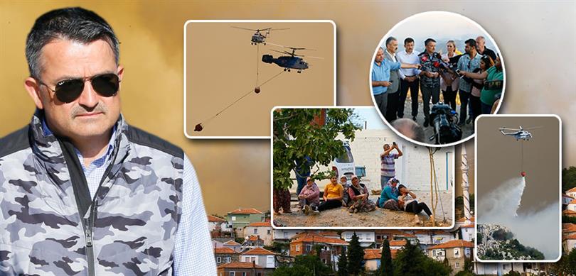 Pakdemirli, Karabağlar ilçesine bağlı Tırazlı Mahallesi'ndeki Tekketepe Gözetleme Kulesi'nde yaptığı açıklamada, meteorolojik şartların kontrolü güçleştirdiği bir ortamda bulunduklarını, rüzgarın yönünün sürekli değiştiğini söyledi.