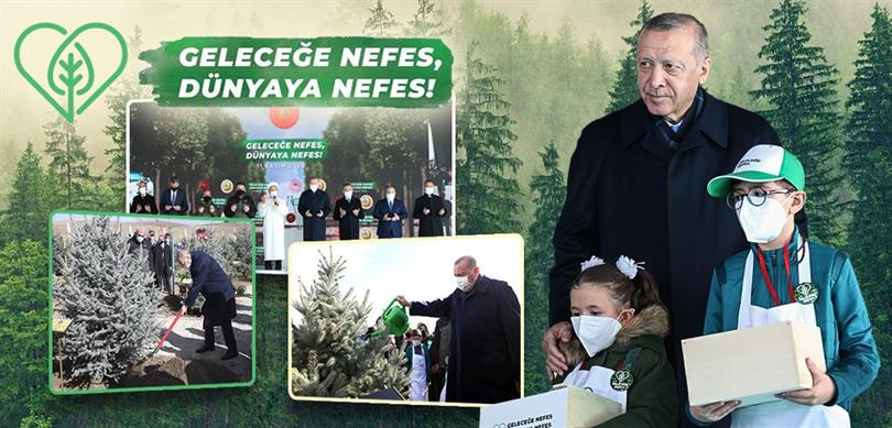 Cumhurbaşkanı Erdoğan, ağaçlandırma kampanyası dolayısıyla bu kampanyayı her yıl Türkiye'de ve kardeş ülkelerde devam ettireceklerini, geleceğe nefes dünyaya nefes olacaklarını söyledi.
