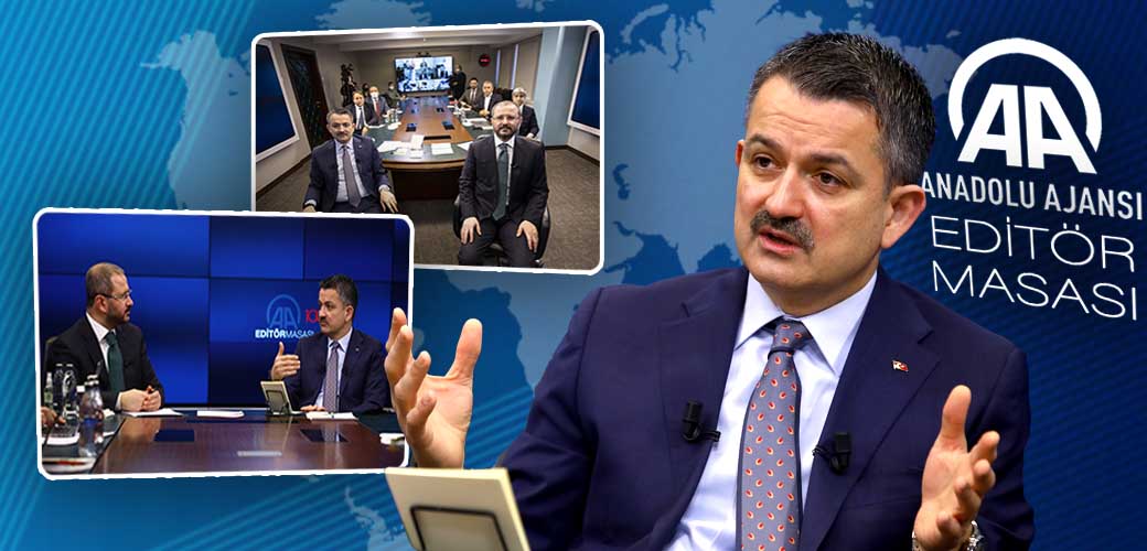 Tarım ve Orman Bakanımız Dr. Bekir Pakdemirli, Anadolu Ajansı (AA) Editör Masası'nda, Cumhurbaşkanımız Sayın Recep Tayyip Erdoğan'ın himayelerinde tanıtımı yapılan "1. Su Şurası"na ve gündeme ilişkin soruları yanıtladı.