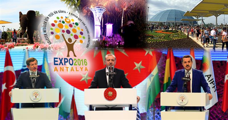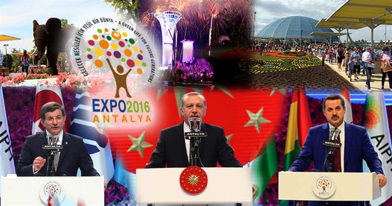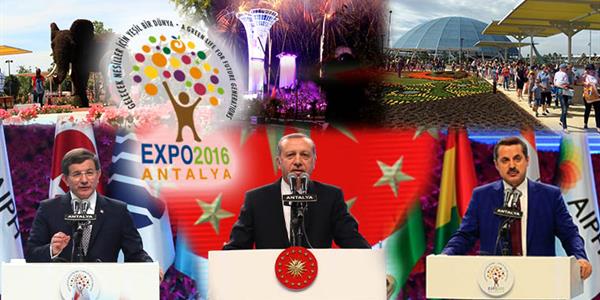 Türkiye'nin ilk EXPO'su olan EXPO 2016 Antalya; su, ses ve ışık gösterileri eşliğinde 5 binin üzerinde davetlinin katıldığı görkemli bir törenle açıldı.