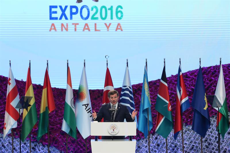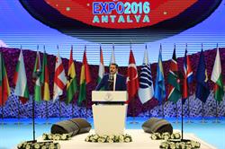 Başbakan Davutoğlu da törende yaptığı konuşmada, NATO Zirvesi, G20 Zirvesi gibi uluslararası organizasyonların bir kısmının Antalya'da gerçekleştirildiğini hatırlatarak, EXPO 2016 Antalya'ya katılan 53 ülkenin temsilcilerine teşekkür etti.