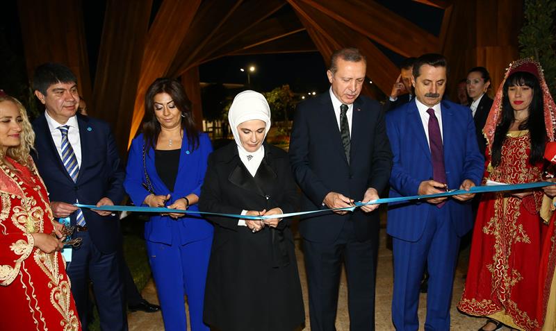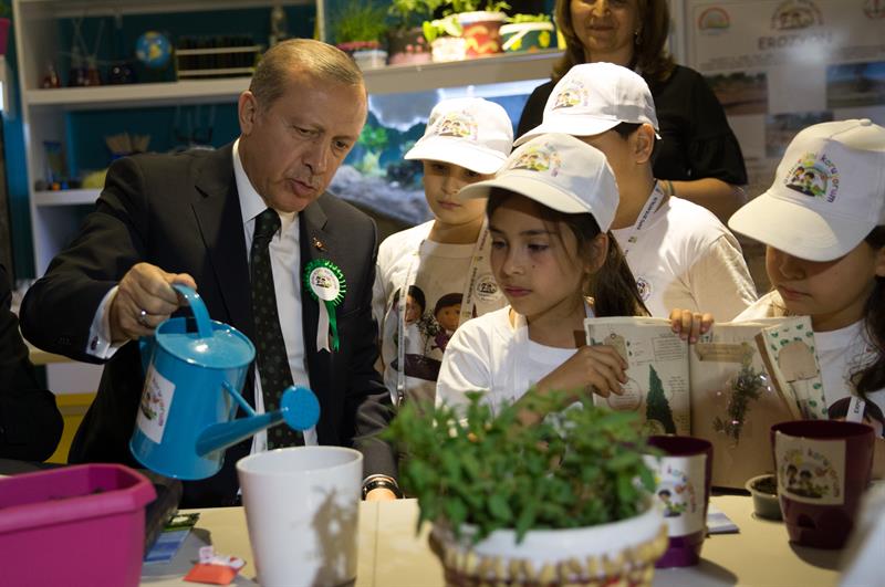 Çin Bahçesi'ni açan Erdoğan, Milli Eğitim Bakanlığı, Gıda, Tarım ve Hayvancılık Bakanlığının "Geleceğimi Koruyorum" isimli standını gezdi, EXPO 2016 Antalya'nın maskotları Ece ve Efe ile birlikte fotoğraf çektirdi ve alanda bulunan çocuklarla sohbet etti.