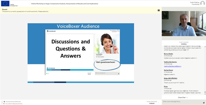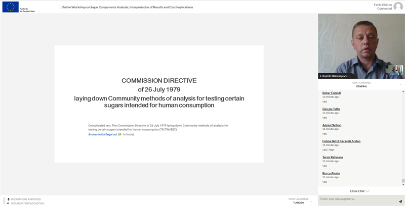 Ülkemizde imalatçı-ihracatçı firmalarımızın C şekeri teşvikinden hak ettikleri ölçüde yararlanabilmelerini sağlamak ve ayrıca yine şekerli mamul üreticisi firmalara yapılan denetimlerde, denetimin bir ayağı olarak analiz ve analiz sonucu yorumlamalarını daha doğru bir şekilde yerine getirmek büyük önem arz etmektedir. Bu kapsamda, 1-2-3 Temmuz 2020 tarihlerinde Online Video Konferans şeklinde Avrupa Birliği TAIEX Bilgi Değişim Ofisi koordinasyonunda Tarım ve Orman Bakanlığı, Ticaret Bakanlığı, AB Başkanlığı olmak üzere ilgili teknik personeli ile birlikte yaklaşık 50 yerli ve yabancı kişinin katılım sağladığı "Şeker Bileşenleri Analizi, Sonuçların Yorumlanması ve Maliyetler" konulu çalıştay başarıyla sonuçlandırıldı.