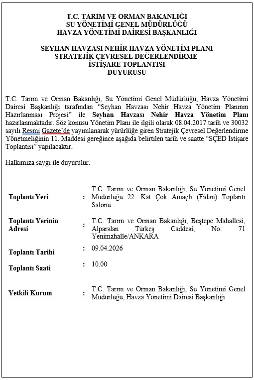 Seyhan Havzası Stratejik ÇED İstişare Toplantısı