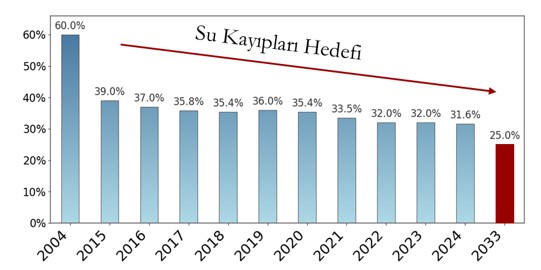 2004 yılında ülkemiz genelinde %60'lar seviyesinde olan ortalama su kaybı, 2024 yılında %31,6'ya indirilmiştir. Su kayıp oranları %25 seviyesine indirilmesi ile yaklaşık 5 milyon nüfuslu bir kentin 1 yıllık su ihtiyacına karşılık gelecek su kazanımı elde edilebilir.