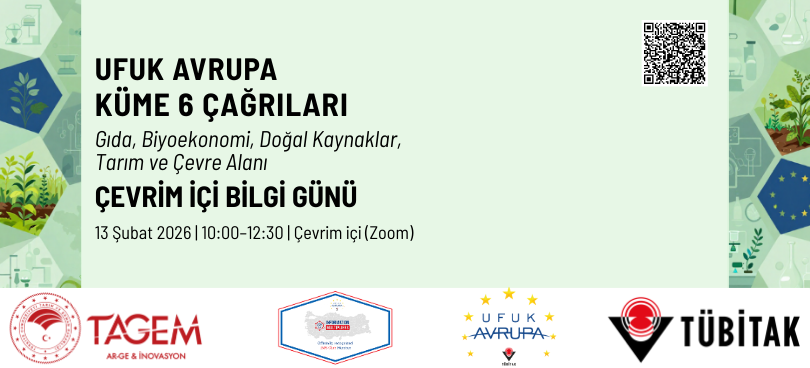 Genel Müdürlüğümüz ve TÜBİTAK iş birliğinde, Ufuk Avrupa Programı “Gıda, Biyoekonomi, Doğal Kaynaklar, Tarım ve Çevre" (Küme 6) çağrılarına yönelik olarak 13 Şubat 2026 Cuma günü çevrim içi bir Bilgi Günü düzenlenecektir.