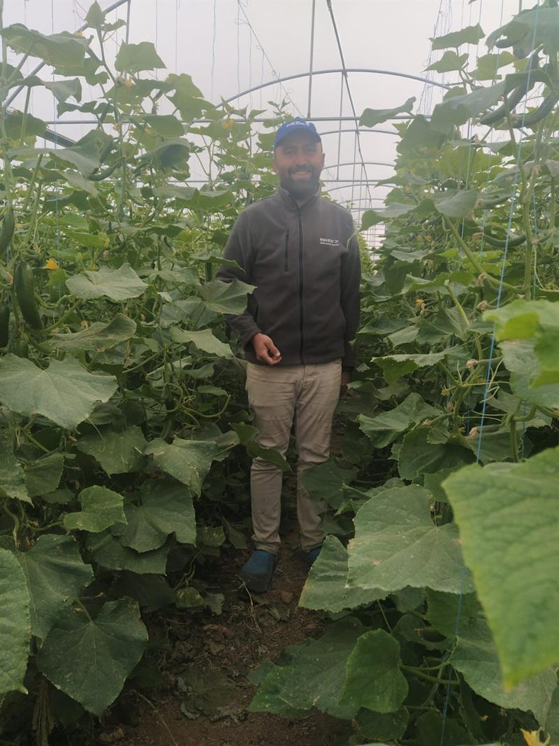 "Kontrollü örtüaltı yetiştiriciliği" projesi uygulayan Oğuz ÇİÇEK, 1.000 m2 alanda kurduğu serada şu anda salatalık yetiştirmektedir. Aynı zaman da bölgedeki çiftçilere de seracılık konusunda bilgiler vermektedir.